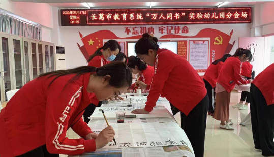 钟繇故里,万人同书。5月17日,许昌长葛市举办百所学校、千名教师、万名学生同书一幅字活动。据了解,本次活动以“弘扬传统文化,传承红色基因”为主题,通过共同书写诗词《念奴娇·追思焦裕禄》,传承弘扬中华优秀传统文化,体悟焦裕禄精神时代力量,培养书写习惯,促进学生全面发展。