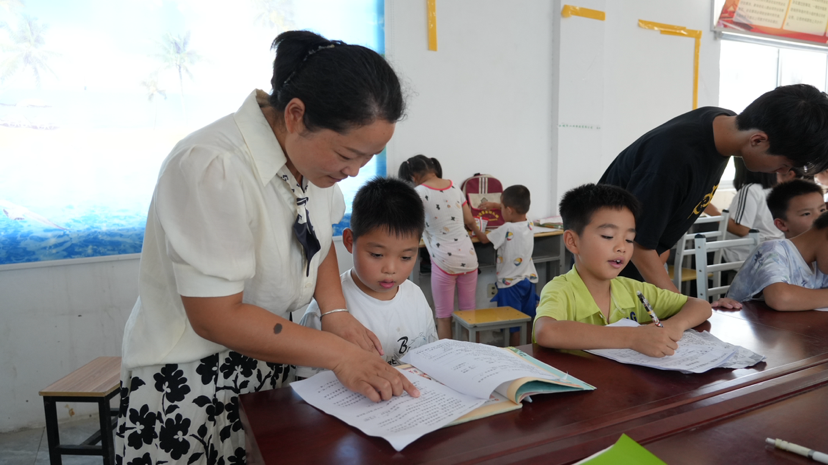 群众的期盼就是行动的号角。李鑫在深入走访摸清村情后,将解决留守儿童暑期看护难题作为驻村工作的突破口。在村“两委”和上级党组织的支持下,她迅速行动,整合村党群服务中心场地资源,协调租借桌椅、安装空调,精心设计课程,并招募3名返乡大学生志愿者。经过紧锣密鼓地筹备,轩庙村“公益暑托班”正式开班,当天就吸引了50多名孩子报名。