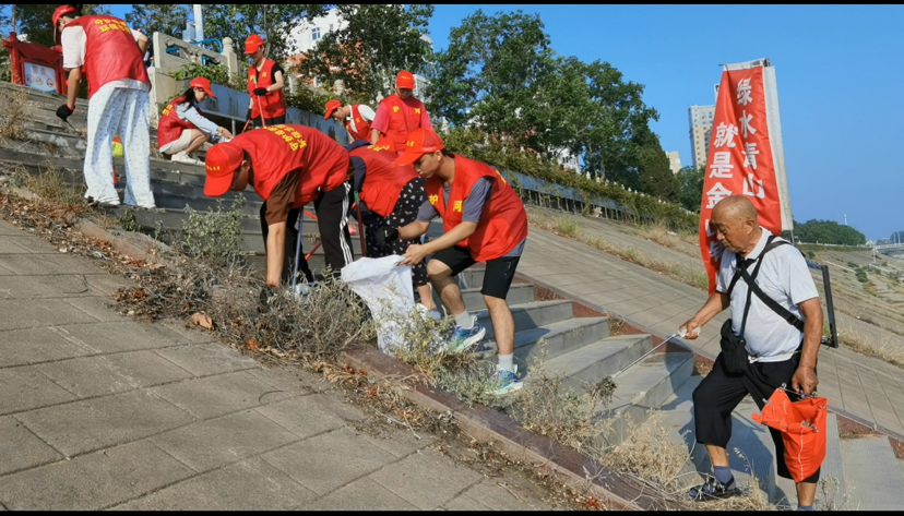 七年前,孙占发偶然遇见周口市环保志愿者开展宣传活动,他看到每位志愿者肩头都背着印有“绿水青山就是金山银山”字样的宣传旗帜,鲜红的旗帜在阳光下格外夺目。孙占发觉得这种方式很好,能起到提醒大家爱护环境的作用,从此便学着志愿者的样子,将旗帜背在身上。七年风雨无阻的坚持,这面旗帜早已成了他践行“为身边环境做点事”的信念象征:守好一河清水,护好一方绿意。