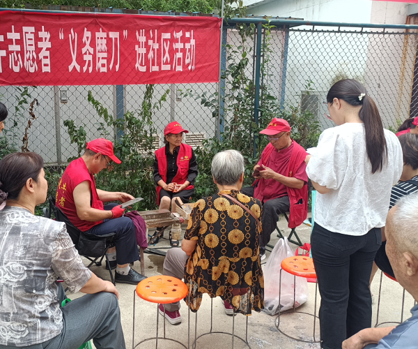 七年时光里,孙占发的事迹感动了身边人,更得到了媒体关注。今年5月29日,他的故事登上《中国水利报》。通过这篇报道,更多人知晓了这位护河志愿者。而孙占发的志愿服务,不止于护河,他还经常参加志愿者组织的“文明实践我行动 志愿服务进社区”活动,义务为群众磨刀。每次活动,他的摊位前总围满居民。