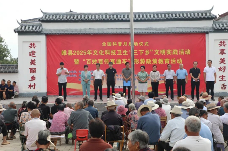 9月10日,商丘睢县2025年文化科技卫生“三下乡”文明实践活动暨“全国科普月”启动仪式在周堂镇黄堂村举行,把文化产品、农业技术、法律知识等送到农民群众身边。