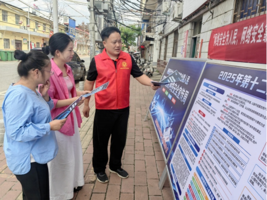 日前,宛城区瓦店镇组织新时代文明实践所联合镇司法所开展“网络安全为人民 网络安全靠人民”2025年国家网络安全宣传周主题活动,将网络安全知识“干货”送到群众身边。