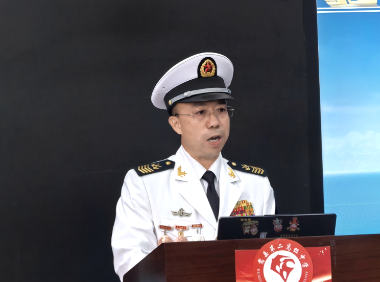洛阳市嵩县第二高级中学迎来了一位特殊的校友——海军资阳舰一级军士长马少利。身着洁白军装,胸前挂满军功章,这位前不久获评“最美新时代革命军人”的“兵专家”走上母校的讲台,为师生们带来了一堂生动的国防教育课。