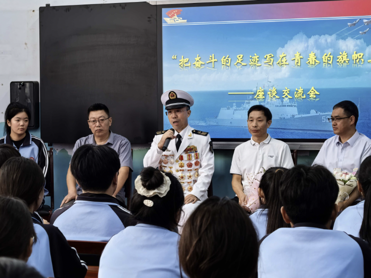 “我的家在马沟村,我在这里长大。27年前,我和你们一样,坐在这个教室里,怀揣着对未来的憧憬。”讲台上,马少利面对青春洋溢的学弟学妹,分享了自己从第一次出海时“两小时吐了七次”的新兵,成长为“全军优秀军士”的奋斗历程。
