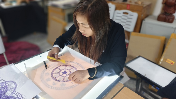 起步阶段充满挑战。“没有教具,自己也不会。但是那个特殊时期和教师的信仰,促使我必须从民间剪纸走进非物质文化遗产剪纸这个专业里来。”王海英说。
