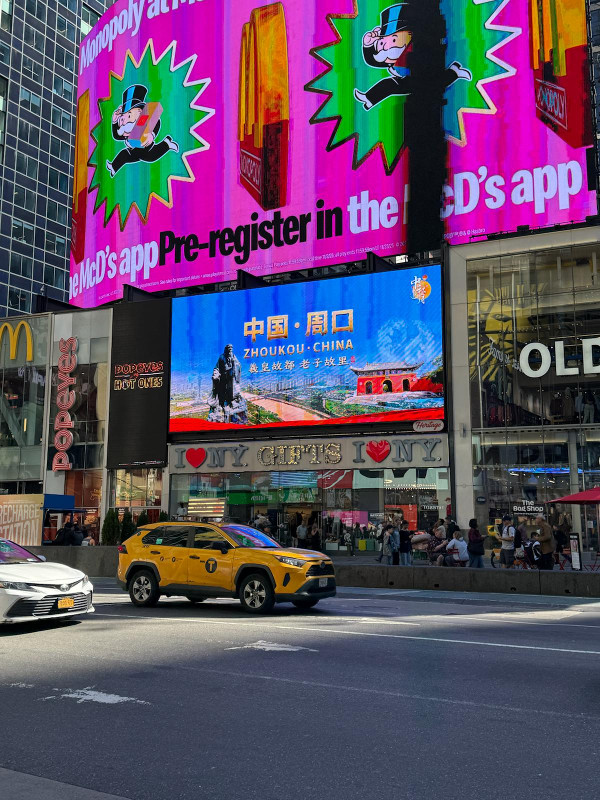 “9月29日至10月12日,周口中秋主题海报先后在美国纽约时报广场、法国巴黎东方中心、新加坡财富中心、马来西亚吉隆坡武吉免登商业区、泰国曼谷市中心MBK商场等多个海外知名地标户外大屏亮相,向世界展示‘羲皇故都、老子故里’的文化内涵。与此同时,主题海报还将同步登陆北京、广州、长沙、哈尔滨、香港、上海等城市核心区域户外大屏……”据周口市委宣传部对外宣传办公室相关负责人介绍,周口中秋主题海报及城市形象视频还将同步在法国巴黎东方中心海外社交媒体矩阵、新华社客户端等平台发布,并借力“新华屏媒”视频号、“秀我中国”视频号、“摄影世界”视频号及抖音号等渠道向全球传播,让全球受众直观感受周口文化底蕴。