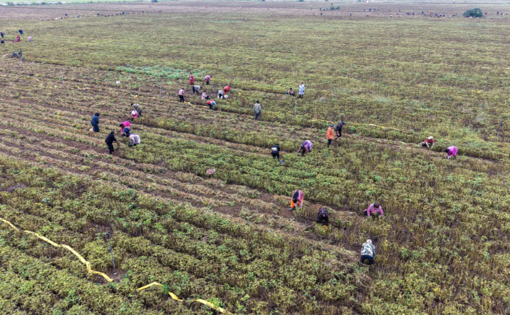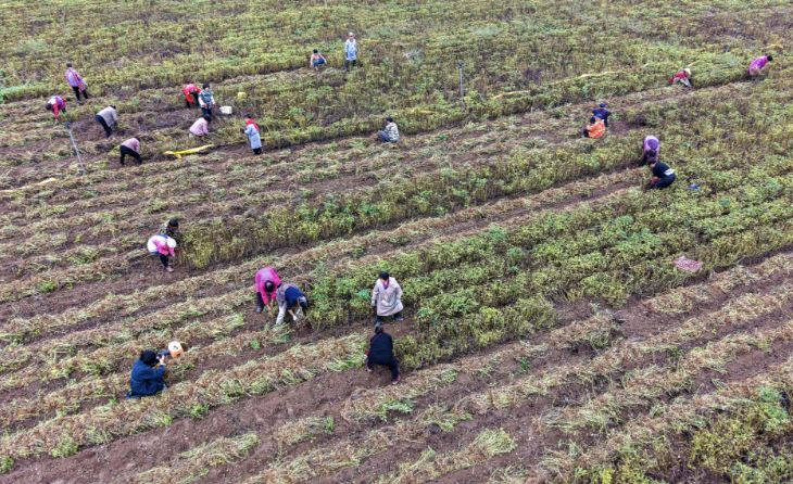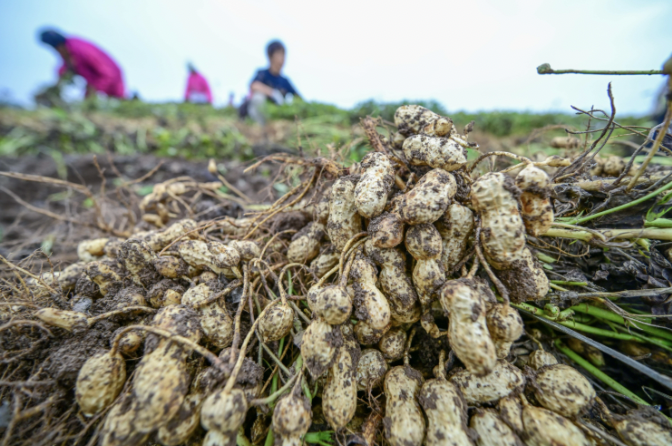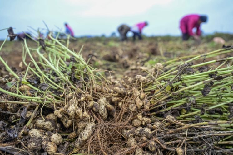 10月11日,洛阳市瀍河区白马寺镇翟泉村,群众在抢收花生。