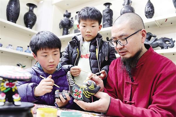 邵波教学生制作彩塑泥泥狗。