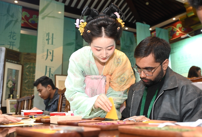洛阳:外国留学生参加“非遗文创雅集”沉浸体验非遗技艺