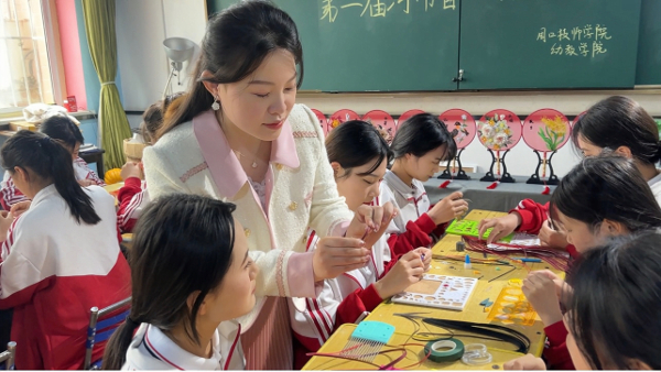 “现在我常把盘纸技巧教给身边朋友,大家都觉得这门手艺特别有意思——既能培养耐心,又能深入了解家乡文化。”另一位学生崔妍补充道,“万老师还会带我们参加各类非遗展示活动,尤其是在今年的豫排联赛‘文旅集市’上,看到自己做的盘纸作品被外地朋友连连称赞,那种成就感油然而生,也更坚定了我传承这门技艺的决心。”