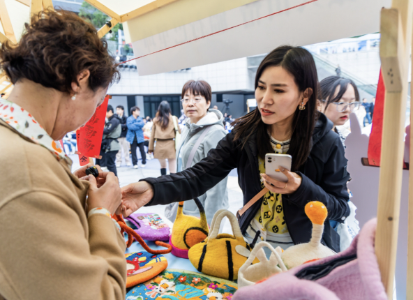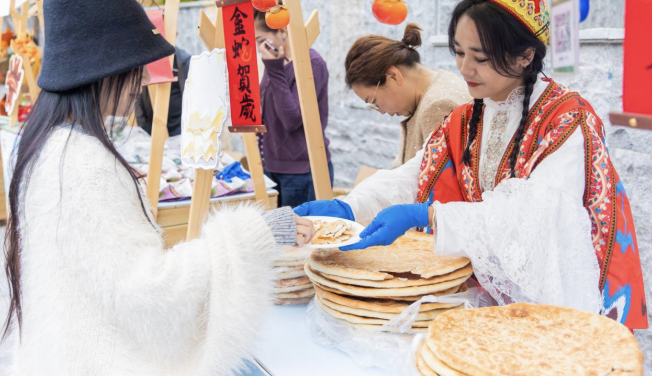 在特色产品展示区,哈密瓜、牛肉干等特产供民众免费品尝,手工艺品与干货特产更是引发选购热潮。