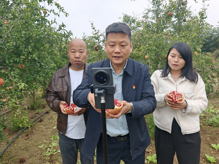10月20日,清晨的光亮刚洒进洛阳市伊滨区诸葛镇下徐马社区的突尼斯软籽石榴园,社区支部书记郑俊飞已支好手机支架。