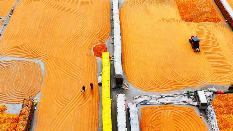 10月24日,周口市扶沟县江村镇东冯村惠民种植合作社村民集中晾晒玉米。通过抓住有利天气窗口及时处理,最大限度地保障了玉米的品质,为秋粮安全入库上了一道“保险”。