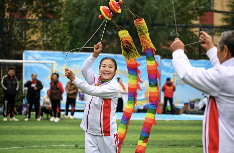 10月25日,洛阳市空竹运动协会举办2025年“庆重阳”老年人空竹比赛,来自洛阳市各地的200余名老年空竹爱好者欢聚一堂,展示高超的抖空竹技艺,展现老年人积极健康的活力风采。