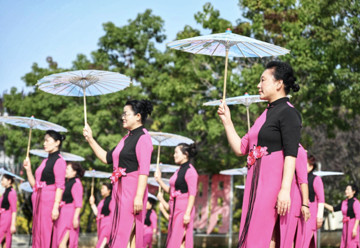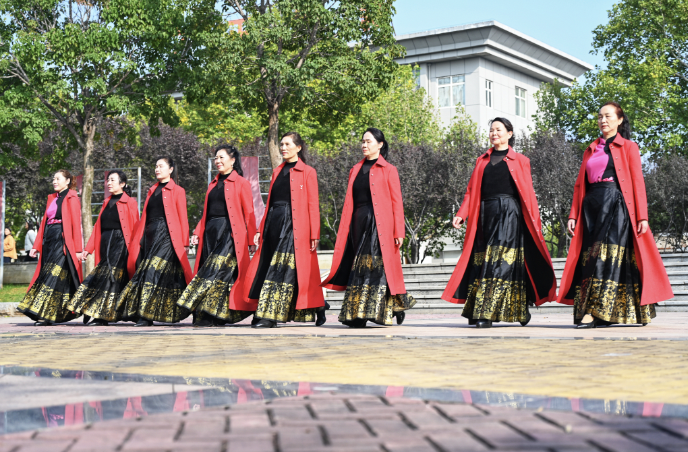 10月27日,洛阳市新安县新时代文明实践中心组织开展老年模特走秀活动,老人们展示“银龄”风采,庆祝重阳佳节。