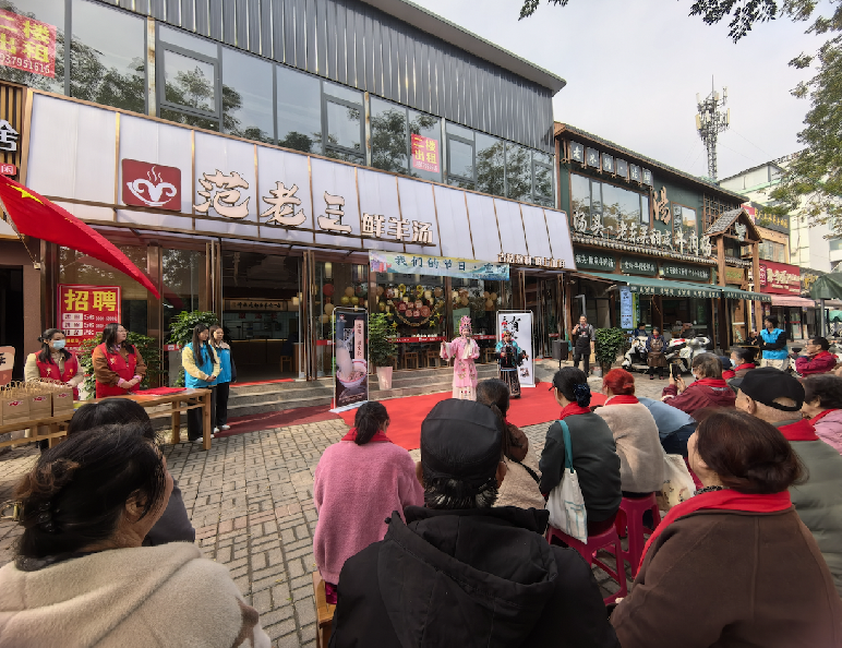 活动现场,志愿者全程提供引导服务。老人们在志愿者的协助下有序签到,领取专属“敬老汤券”,期待的笑容成为现场最温暖的风景。主持人热情开场后,汤馆负责人上台致辞,向老人送上节日祝福,并强调了新时代文明实践中“孝亲敬老”的重要意义。随后,婉转的戏曲表演拉开文化环节序幕,经典唱段引得老人们点头跟唱、掌声不断;社区书画志愿者现场赠送寓意吉祥的国画牡丹作品,将人文关怀融入笔墨之中。