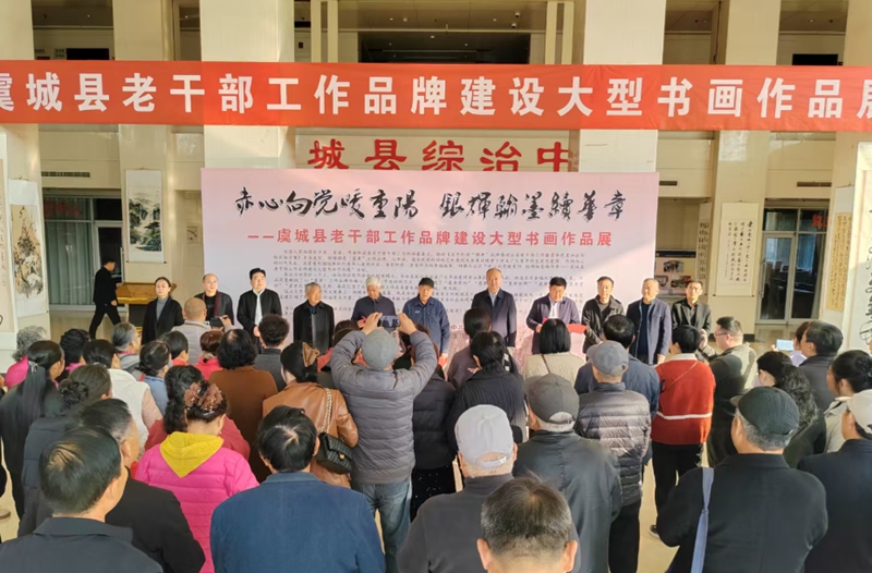 10月22日,虞城县委组织部、县委宣传部、县委老干部局、县民政局联合县老年诗词书画院,在县行政中心综合楼一楼举办“赤心向党暖重阳 银辉翰墨续华章”大型书画作品展。相关部门负责人、离退休老干部代表及老年书画爱好者共120余人参加活动。