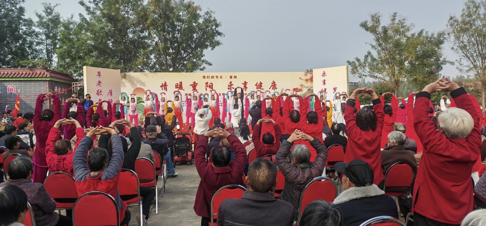 活动现场,热闹非凡。由操舞协会、银河老干部艺术团表演的开场节目《幸福日子嗨起来》喜庆欢快,赢得阵阵掌声与喝彩声。歌伴舞、太极拳剑、情景剧、戏曲选段、健身气舞等节目轮番上演。三河寨村140余名70岁及以上的老年人胸戴大红花,观看演出。百人八段锦展示掀起演出高潮,台上台下百余人共练八段锦,群众跟着一起做,场面震撼人心。“自今年2月济源新时代文明实践中心‘一米阳光’健身气功进基层项目启动以来,我们已组织102名教练志愿者,深入16个镇(街道)42个村(居)以及23个企事业单位,建成长期培训站点54个,培训百余场次,受益群众上万名,为济源全民健身与健康活动贡献力量。”示范区“新时代宣讲师”、健身气功协会副会长柴红梅介绍。