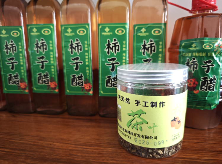在鲜柿与柿饼的基础上,翟功雷还带领合作社研发了具有养生保健功效的柿子醋、柿叶茶等产品,持续延伸产业链。
