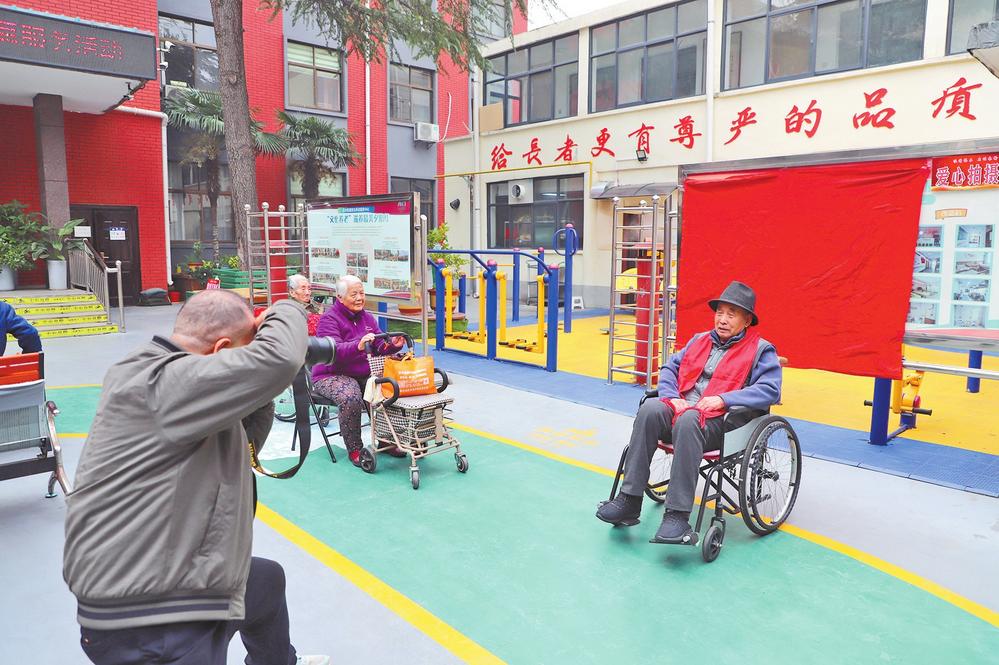 10月29日,在济水街道综合养老服务中心,志愿者正为老人拍摄节日照片。镜头定格下一张张幸福的笑脸,为老人留下了美好的瞬间。 记者 秦磊 通讯员 王龙龙 摄