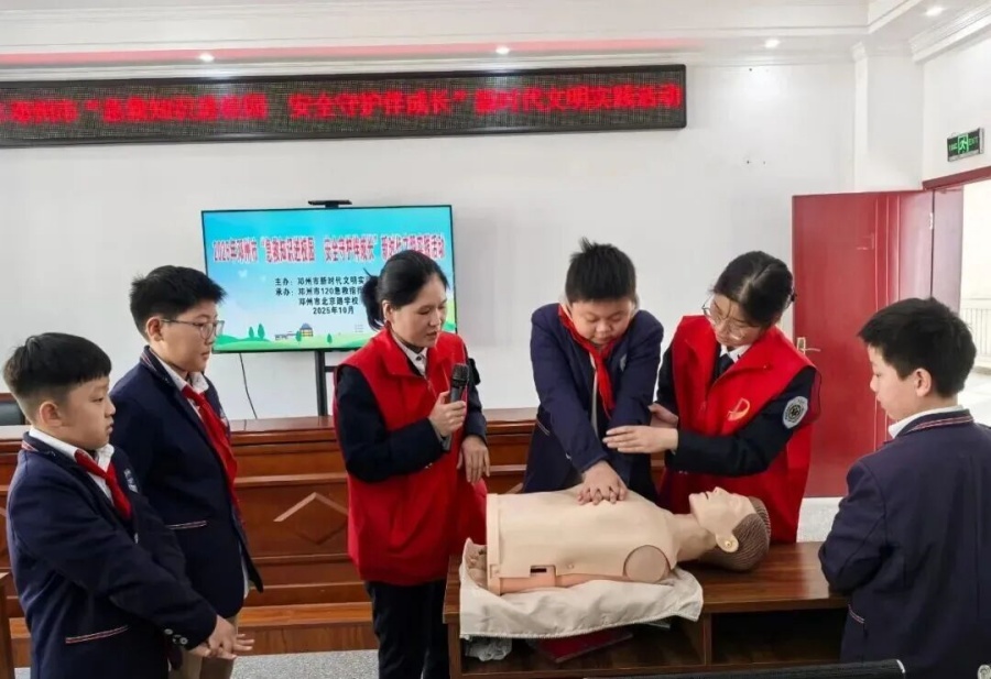 为全面普及应急救护知识,增强青少年的安全意识,邓州市“急救知识进校园 安全守护伴成长”新时代文明实践活动在邓州市北京路学校举行。