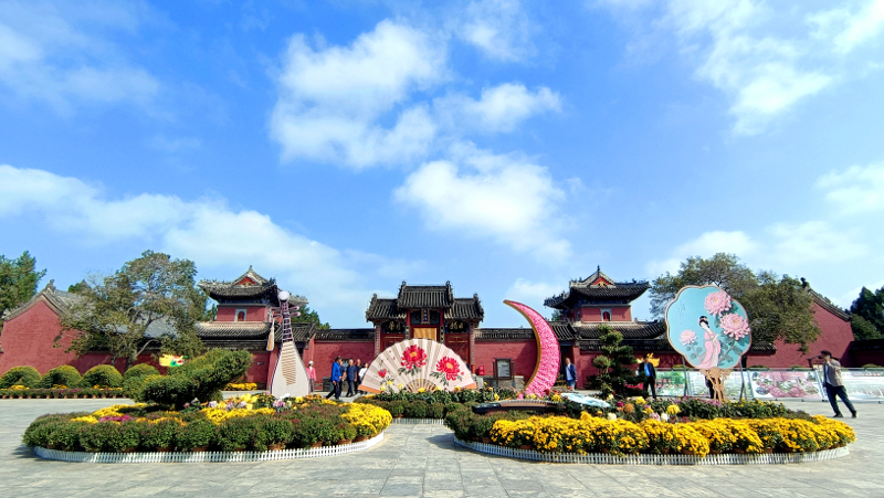 游客在赏菊的同时,还能在景区内体验到丰富多样的游玩项目。非遗手作体验馆里,游客可以亲手制作具有传统特色的手工艺品,感受非遗文化的独特魅力;数字化体验馆运用先进科技,为游客带来沉浸式的互动体验;NPC互动环节中,游客可穿越时空,与历史人物展开一场奇妙的对话。据了解,太昊陵金秋菊展将持续到11月底。