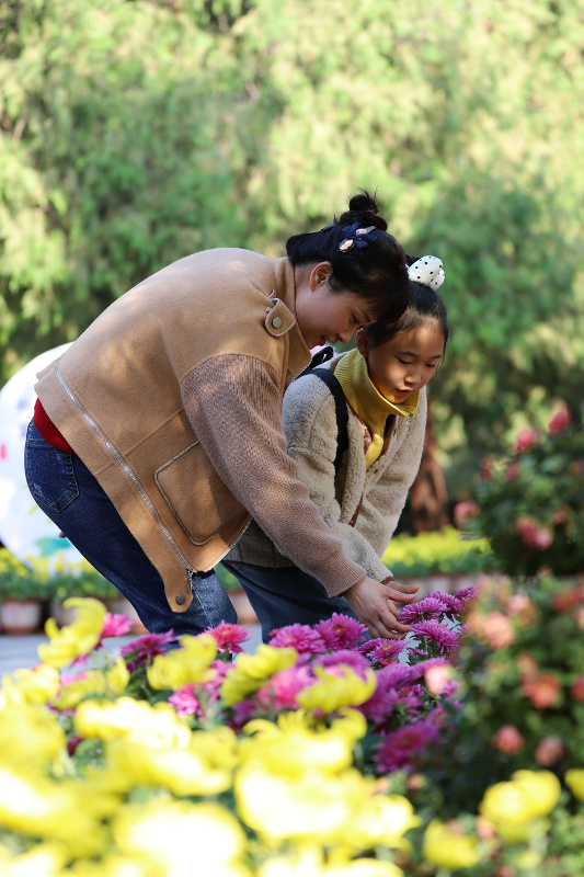 “不是花中偏爱菊,此花开尽更无花。”11月2日,在周口市淮阳太昊陵景区,游客陶醉在菊花的海洋,纷纷拿出手机拍照。 今年太昊陵举办的金秋菊展规模大、品种多。