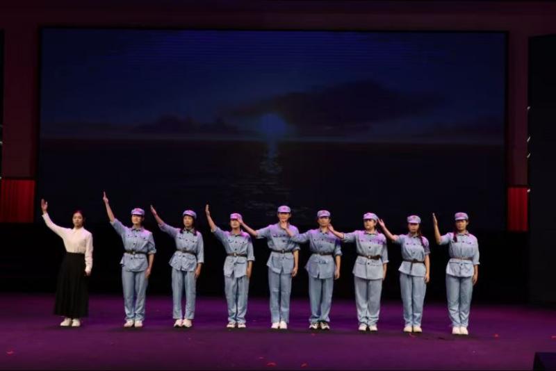 漯河职业技术学院带来的《青春誓言》用铿锵有力的誓言宣告青年的担当。舞台上,演员们的眼神明亮、声音响亮,也让现场观众感受到青春的力量,从来都是民族前进的澎湃动力。