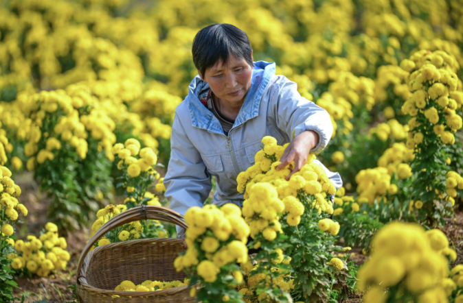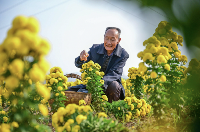 该乡因地制宜,大力发展菊花特色产业,打造集观赏、采摘、加工、销售于一体的菊花产业链,助农增收致富。