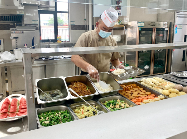 每天中午,富民社区惠民大食堂里饭菜飘香,宫保鸡丁、番茄炒鸡蛋、木须肉等菜品整齐摆放,并搭配热腾腾的主食。老人花9.9元就能享受一顿营养可口的午餐。80岁以上高龄老人和独居老人可免费就餐,行动不便者还可享受免费送餐上门服务。