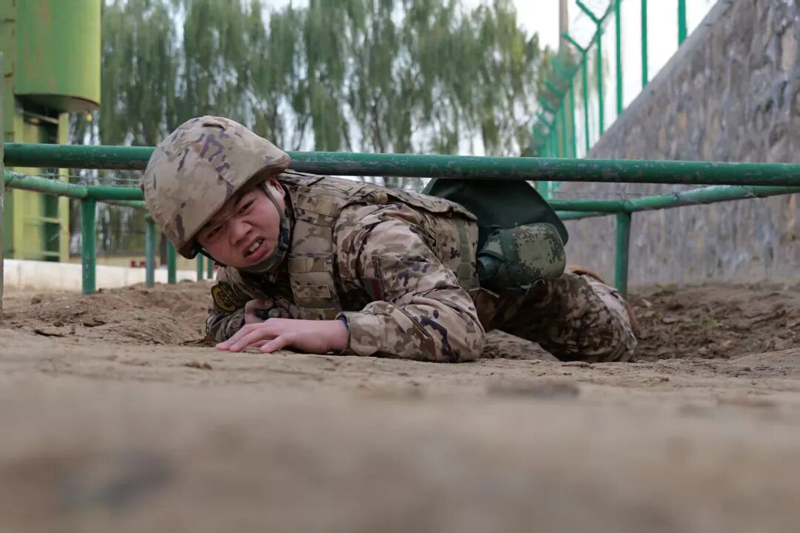 薛银鹏正在进行障碍训练。