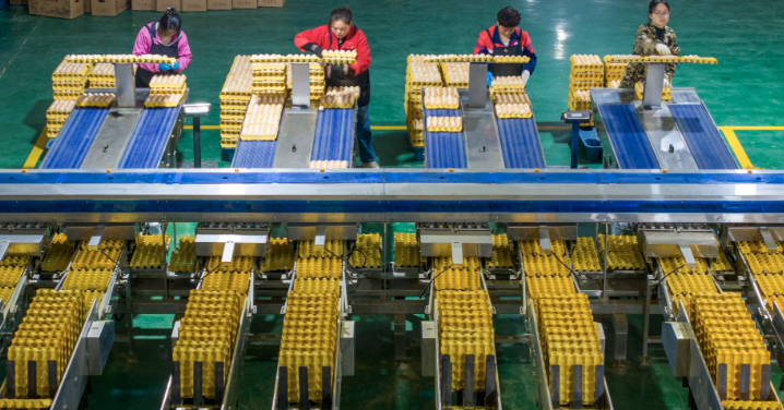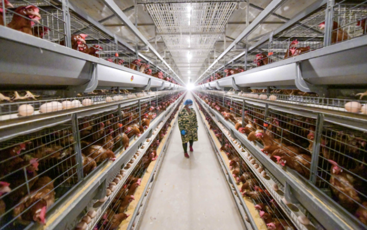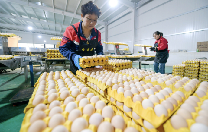 该镇大力发展现代化蛋鸡养殖产业,引进了全流程数字化养殖设备,实现喂料、饮水、集蛋、清粪等环节的自动化,所产鸡蛋销往外地市场,有效带动当地群众在“家门口”就业增收,助力乡村振兴。