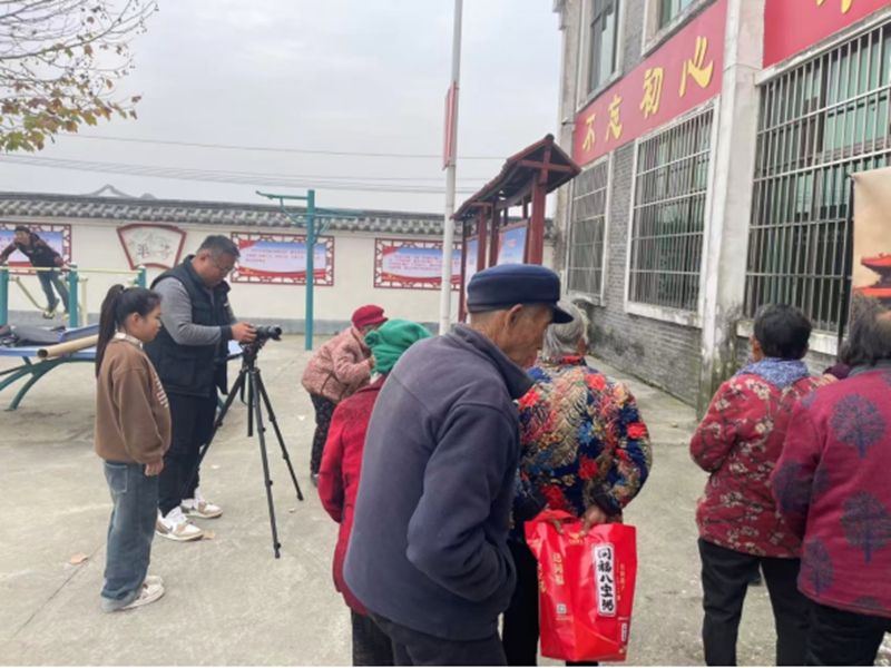 除了温馨的饺子宴,活动还特别组织了志愿者为老人们提供照相服务。村委会特意准备了一幅“天安门”主题画布作为拍摄背景,在志愿者的悉心搀扶和引导下,老人们依次走到镜头前,整理衣冠,神情中流露出激动与自豪。伴随着快门的咔嚓声,一张张幸福的笑脸与象征国家的天安门形象同框,定格成难忘的瞬间。许多老人动情地表示,能在“天安门”前照相,感觉格外有意义,仿佛亲临首都,心中充满了对祖国的热爱与祝福。