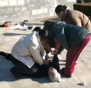 11月19日,上午九点四十分左右,在方城县七峰时代广场,一位大爷突发疾病倒地不起,附近一个白衣女市民连忙上前进行急救,还有市民拨打了急救电话。
