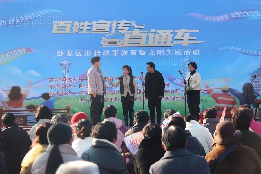 11月19日,卧龙区举办“百姓宣传直通车”形势政策教育暨文明实践活动,采用“文艺+宣讲+服务”的模式,让政策理论“活”起来、文明实践“实”起来。