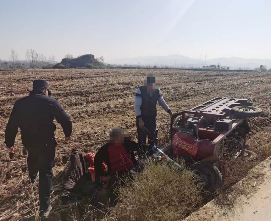 11月24日,桐柏公安民警在巡逻途中,成功救助两名因电动三轮车侧翻被困的老人。