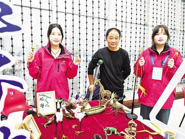 朱洪涛(中)参加“文旅集市”非遗展览。