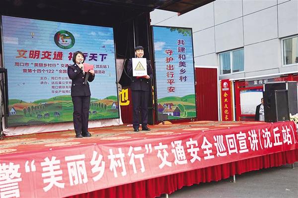 其中,12月2日上午,由周口市公安局交通警察支队主办,沈丘县公安局、河南安钢周口钢铁有限责任公司(简称周口钢铁公司)、平安财险周口中心支公司协办的“文明交通 礼行天下”主题宣传活动,在周口钢铁公司院内隆重举行。周口钢铁公司职工、客货运企业驾驶员、外卖骑手及学生代表等近300人参与活动。