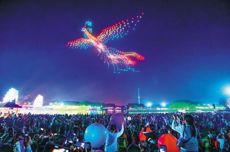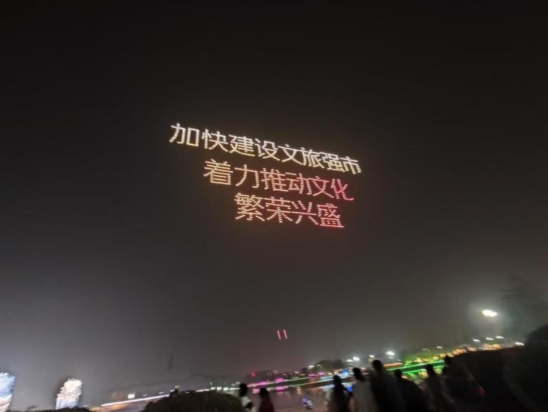 “文化点亮城市”为主题的千机飞“只有漯河”无人机表演。
