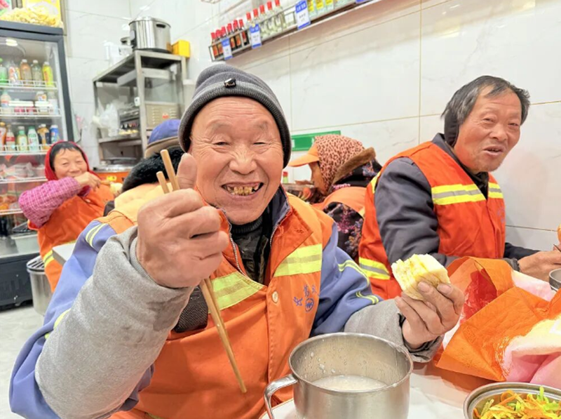 “馍菜汤都合胃口,夏天有凉白开、绿豆汤,冬天有热粥暖茶,每周都盼着这口热乎的。”环卫工人贺香云捧着热粥,笑得很是满足。对她和许多同事来说,这顿免费的早餐不仅暖了胃,更暖了心。