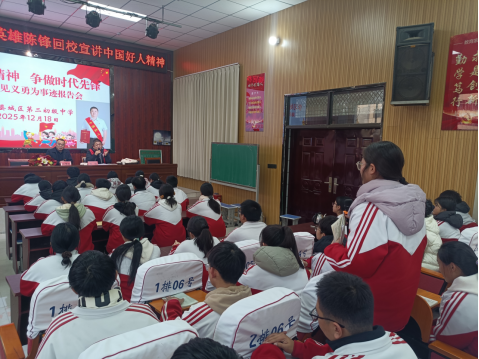 12月18日是雷锋同志诞辰纪念日,“全国见义勇为英雄”陈锋应邀回到母校--西峡县城区第二中学,与师生共同缅怀雷锋同志的光辉事迹,并以亲身经历分享新时代雷锋精神的实践与感悟。这场题为“学习好人精神,争做时代先锋”的主题宣讲,为校园注入了蓬勃向上的精神力量,也成为纪念雷锋诞辰、传承红色基因的生动实践。