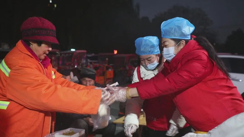 “恁冷的天,能吃到热乎乎的饭,心里头别提多舒坦了!”环卫工人曹春光吃着热乎的早餐,脸上满是笑意,言语间满是对志愿者的感激。