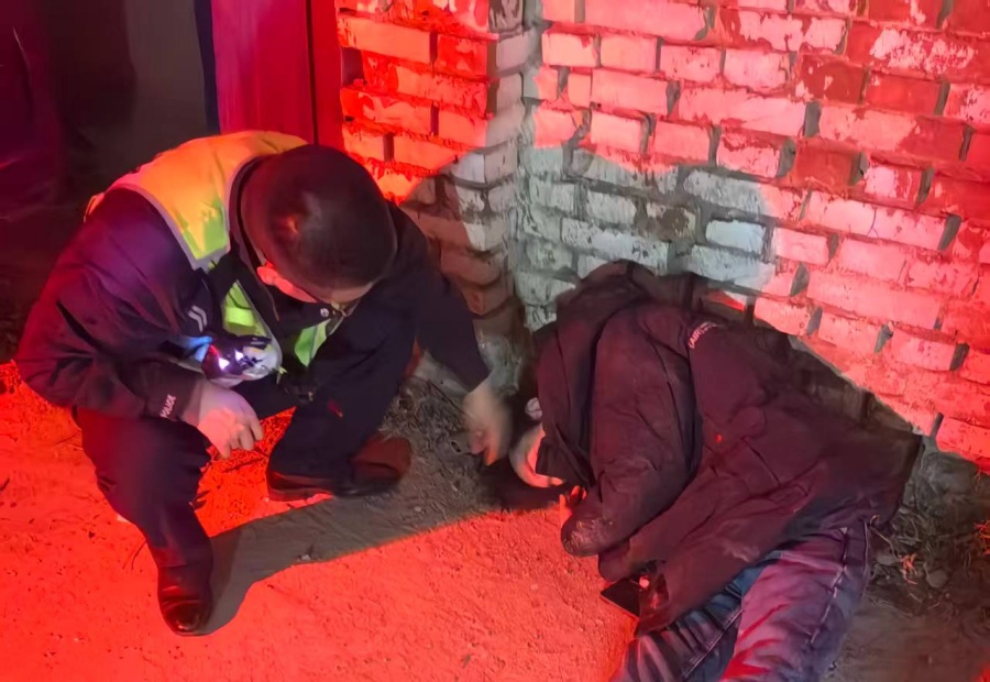 寒冬夜男子醉卧街头 南阳交警暖心救助