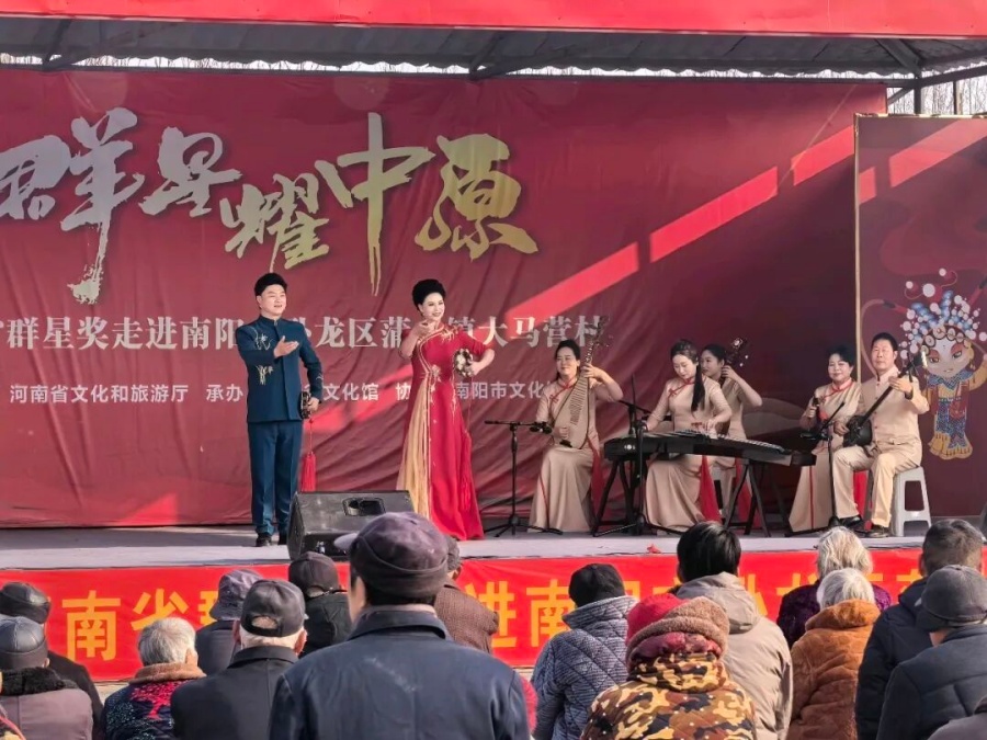为深入推进公共文化服务高质量发展,助力乡村文化振兴,让优质文化资源惠及基层群众,日前,“群星耀中原”——河南省群星奖走进南阳市卧龙区蒲山镇大马营村 ,这场集非遗展示、文艺表演于一体的惠民活动,将艺术的种子播撒在乡村沃土,为基层百姓带来了一场浸润心灵的文化滋养。