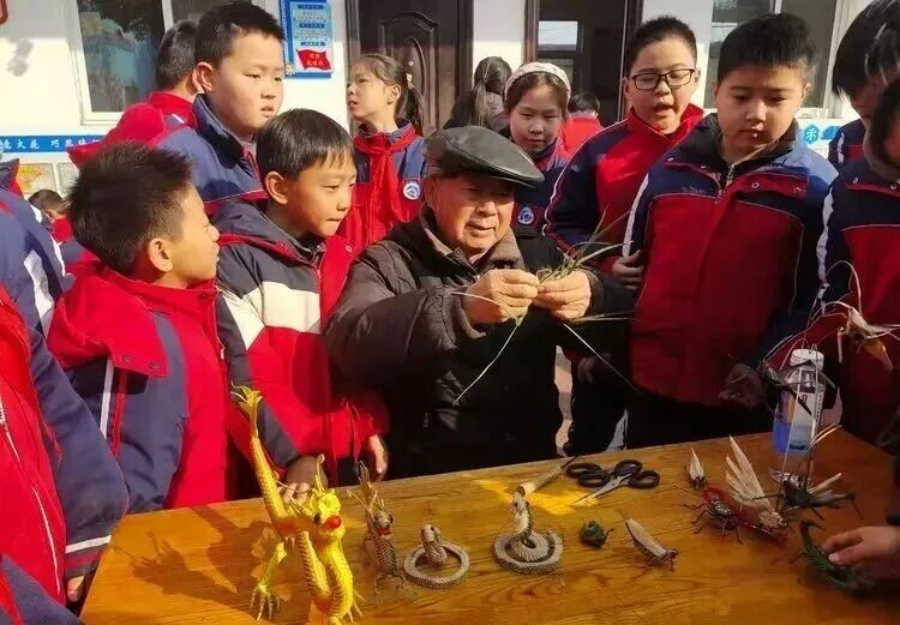 在汉拓体验区,非遗传承者耐心指导大家上纸、刷墨、揭拓,同学们屏息凝神,当一张张带着古朴纹理的拓片从手中诞生时,脸上都露出了惊喜的笑容;糖人摊位前,传承者手中的糖稀金黄透亮,在空气中翻转、拉伸,眨眼间就变成了活灵活现的十二生肖;草编摊位前,一根根普通的草条在传承者手中上下翻飞,很快就编织出蚂蚱、蝴蝶、小篮子等精致物件。同学们纷纷学着传承者的手法,尝试编织属于自己的小作品。在互动交流中,大家不仅学到了传统手艺,更感受到了非遗文化背后的历史和故事。一位同学开心地说:“原来我们身边有这么多有意思的非遗技艺!我今天学会了编小蚂蚱,回家要教给爸爸妈妈!”