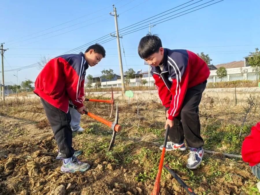 日前,南召县马市坪乡西大庄小学的“百草园”里热闹极了!锄头刨土的“咚咚”声、孩子们的欢呼声此起彼伏,一场超有意义的蔬菜种子+芋头采收行动正在火热进行,田间地头秒变欢乐实践课堂,五育融合的快乐直接拉满!