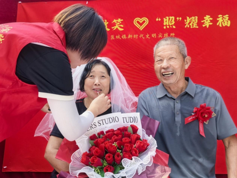 商丘市睢县匡城镇新时代文明实践所持续开展“最美微笑 照耀幸福”公益摄影活动,两年来已走进20个行政村,为3000多名70岁以上老人补拍婚纱照,弥补了他们多年来的遗憾。活动中,老人们常说“一辈子没照过婚纱照”,脸上却洋溢着幸福而羞涩的笑容。那深深刻着的皱纹里,透露出相濡以沫的珍贵。