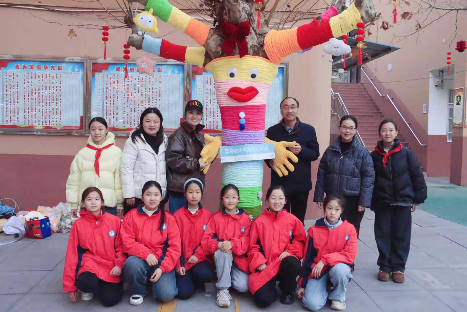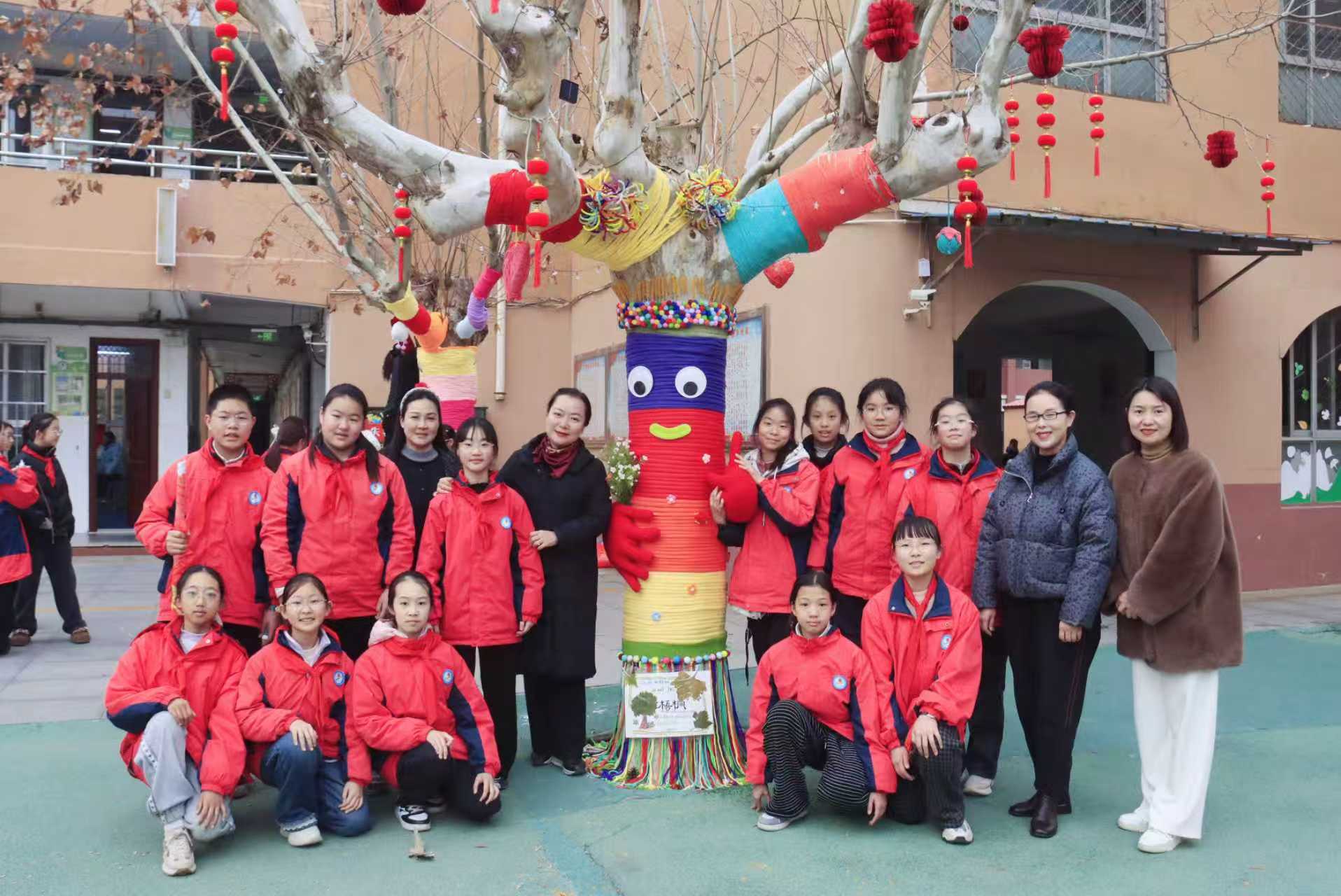为营造温馨喜庆的节日氛围,传播生态文明理念,推动美育融入校园生活,2025年12月30日,驻马店第二实验小学开展了一场独具特色的树木守护与生态艺术创作美术实践活动,师生携手为校园树木穿上“新年彩衣”,用艺术装点自然,成为冬日校园里一道温暖而亮丽的风景。
