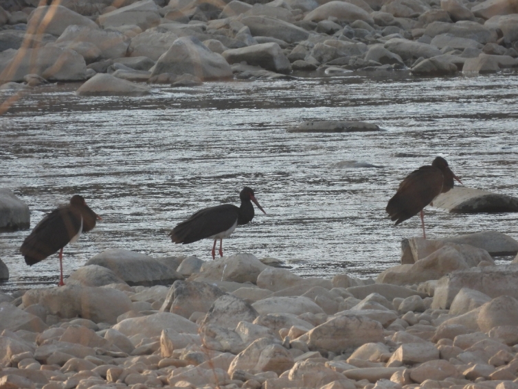 其中,全球极危物种青头潜鸭已连续第三年选择在此越冬。青头潜鸭对栖息环境要求极为苛刻,水质、食物来源和隐蔽条件缺一不可。它的连年到来,成为湿地生态质量向好的有力证明。与此同时,被誉为湿地生态系统“指示物种”的黑鹳也如期现身,在湖畔浅滩悠然觅食,为冬日的陆浑湿地增添生机。