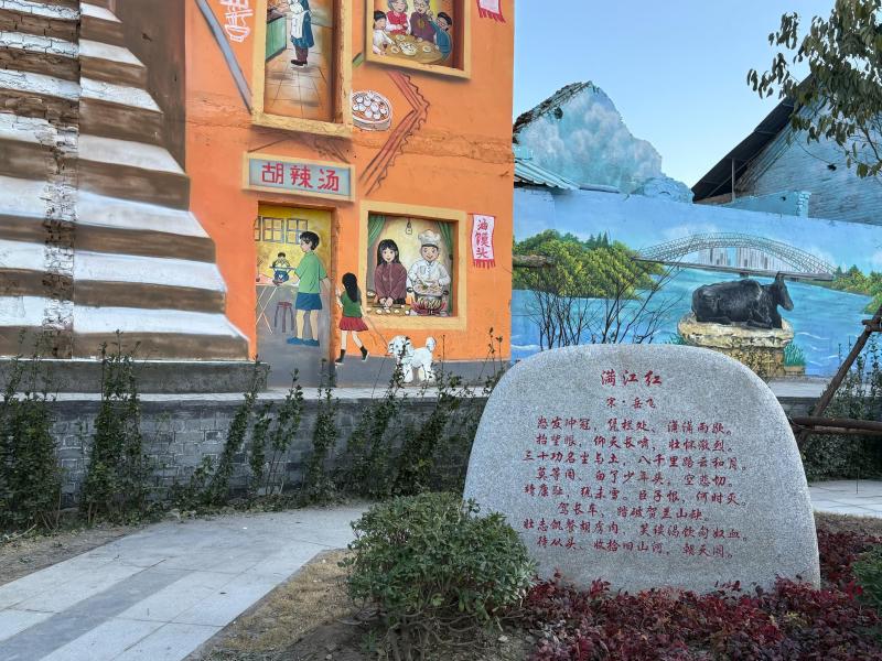 如何让闲置资源“活”起来?郾城大捷、镇河铁牛、龙塔古篆……这些文化符号能否上墙,成为看得见、摸得着的乡愁记忆?循着这一思路,南街社区锚定“墙体改造+文化传承”的融合路径,将“忠义”定为公园的核心主题。“忠义街的名字源于郾城大捷。这是漯河的重要历史记忆。公园内的忠义亭、刻有《满江红》的石碑,都和‘忠义’主题相呼应。把这些文化元素画在墙上,居民散步时就能沉浸式感受家乡的历史底蕴。”杨文莹补充说。